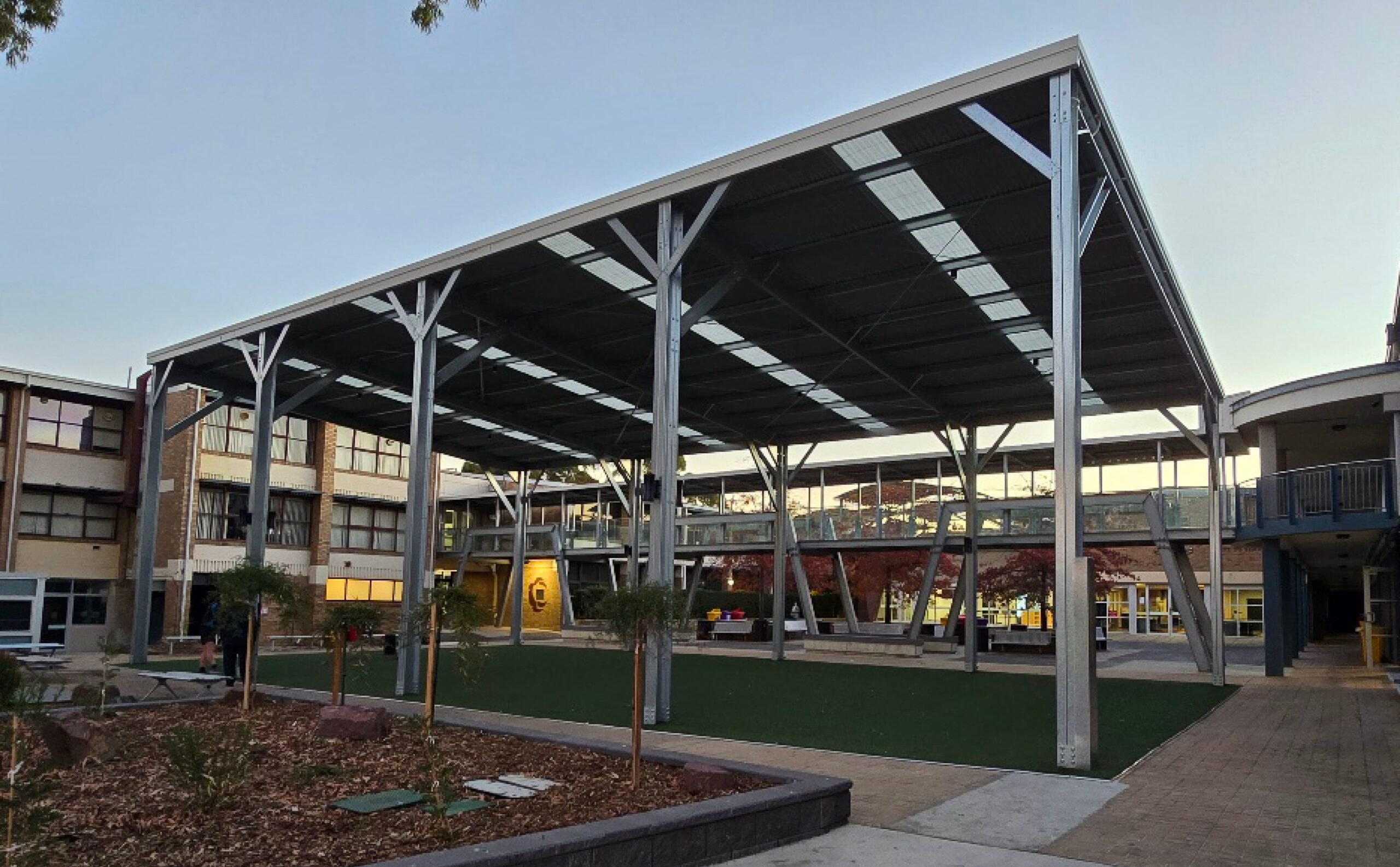 - Covered areas – protect students from the elements with outdoor covers for playgrounds, assembly areas, and walkways.